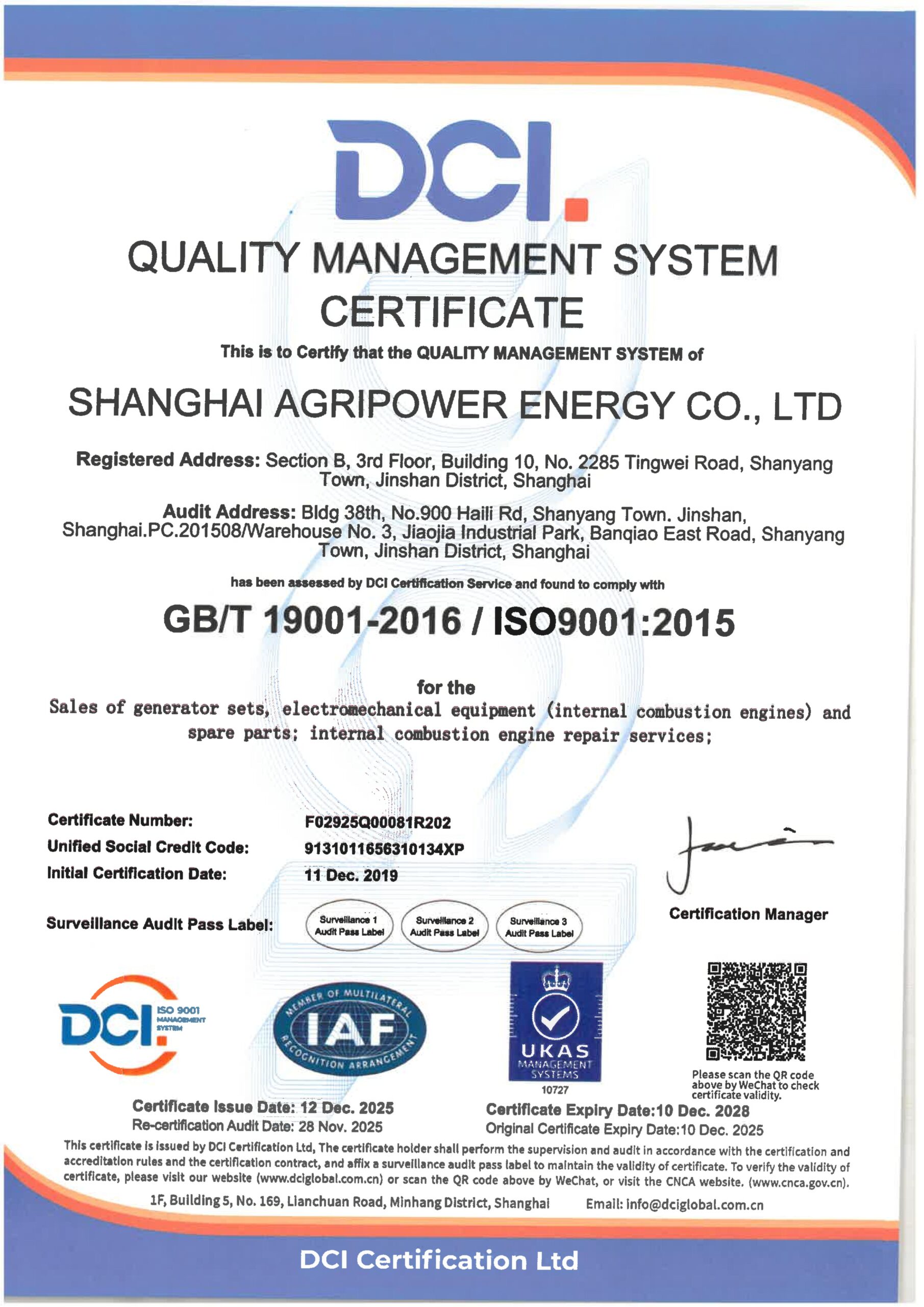 Our production base located in Fuan City, Fujian Province, covering an area of over 10,000 square meters and with an annual production capacity of 5,000 diesel generator sets ranging from 6-3000kW, Agripower has passed ISO 9001 Quality Management System, ISO 14001 Environmental Management, and ISO 45001 Occupational Health and Safety Management System certifications. Our products are comprehensively tested, perform excellently, and are reliable in quality, fully compliant with international and domestic industry standards, and have obtained certifications such as Tyle and CE.